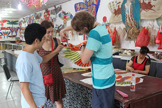 三名美国中学生自7月6日开始在我院进行了为期三周的汉语学习和中国传统文化体验活动。为了使本次研修活动内容充实,丰富多彩,从项目的策划、联络、主题的确定、课程设置到教学实施等各环节,国际交流与合作处及参与部门、教师进行了精心准备,达到了很好的效果。汉语学习及文化体验课程达到了近100学时,除汉语学习外,还设置了包括武术、毛笔字、硬笔书法、剪纸等内容的校内文化体验课,以及参观潍坊博物馆、风筝博物馆、滨海校区、杨家埠民俗文化古村、白浪河湿地公园、亚星集团、到农家菜园识别各种中国蔬菜、到华都颐年养老院进行义工活动等丰富多彩的校外体验及考察活动。还游览了闻名海外的五岳之尊泰山和儒家文化的发源地曲阜。这些活动让三名洋学生生动真实地学习了汉语,充分体验了中国文化和潍坊的魅力。