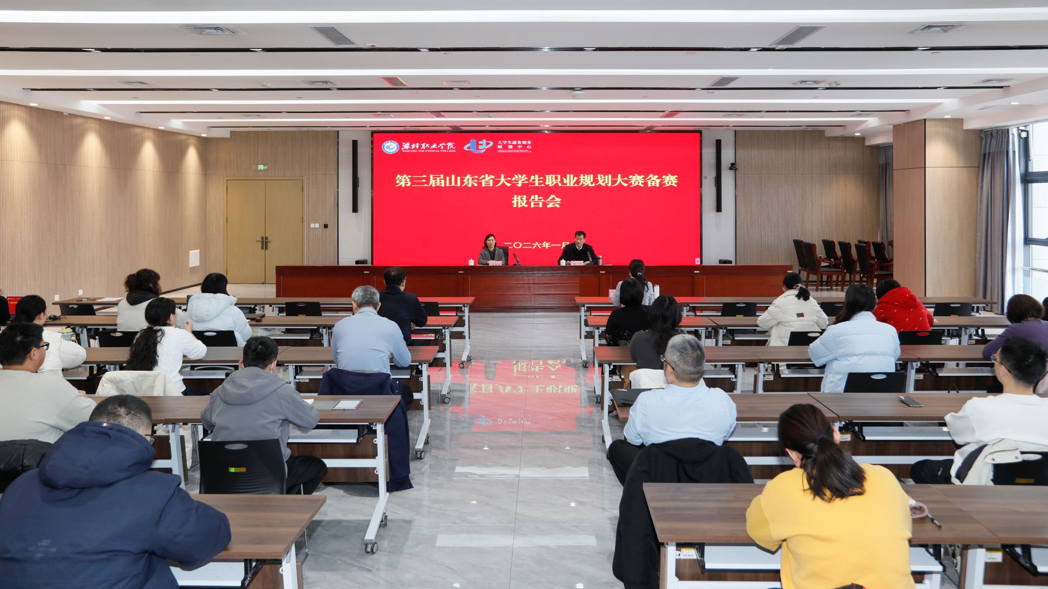 1月7日下午,学院在滨海校区举办第三届山东省大学生职业规划大赛备赛报告会。学院副院长陈美霞出席,招生就业处主要负责同志及相关人员,各二级学院分管副院长、职业规划大赛课程教学赛道参赛教师、就业赛道和成长赛道指导教师,职业规划和就业指导课授课教师代表等50余人参加了报告会。
