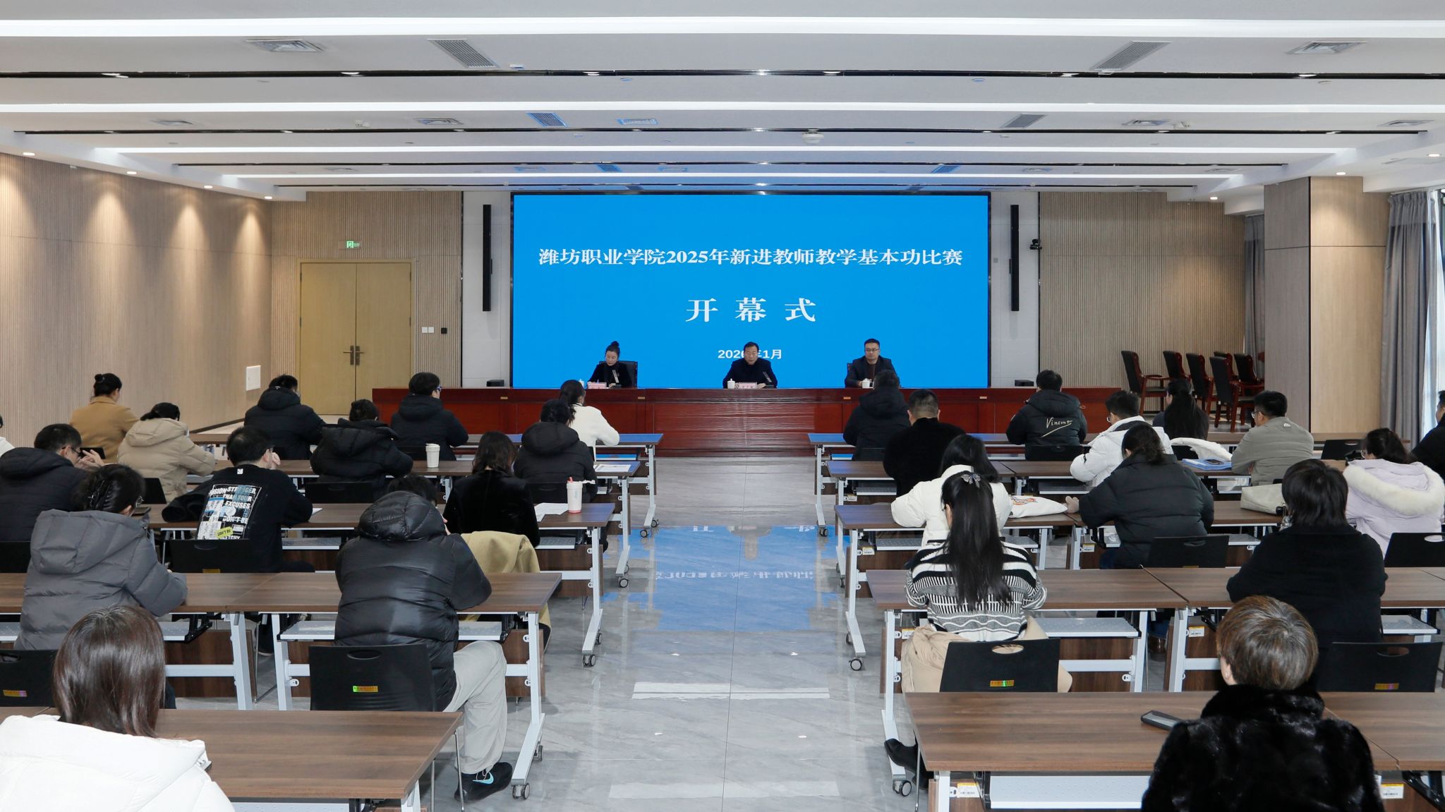 为落实学院2025年新进教师入职培训实施方案,检验新进教师入职集中培训与导师帮扶成效,1月8日上午,学院在滨海校区举办2025年新进教师教学基本功比赛。学院党委副书记贺志强出席并讲话,相关职能部门负责同志、教学督导专家、帮扶导师及27位新进教师参加。启动仪式由学院党委委员、组织人事处处长于涛主持。