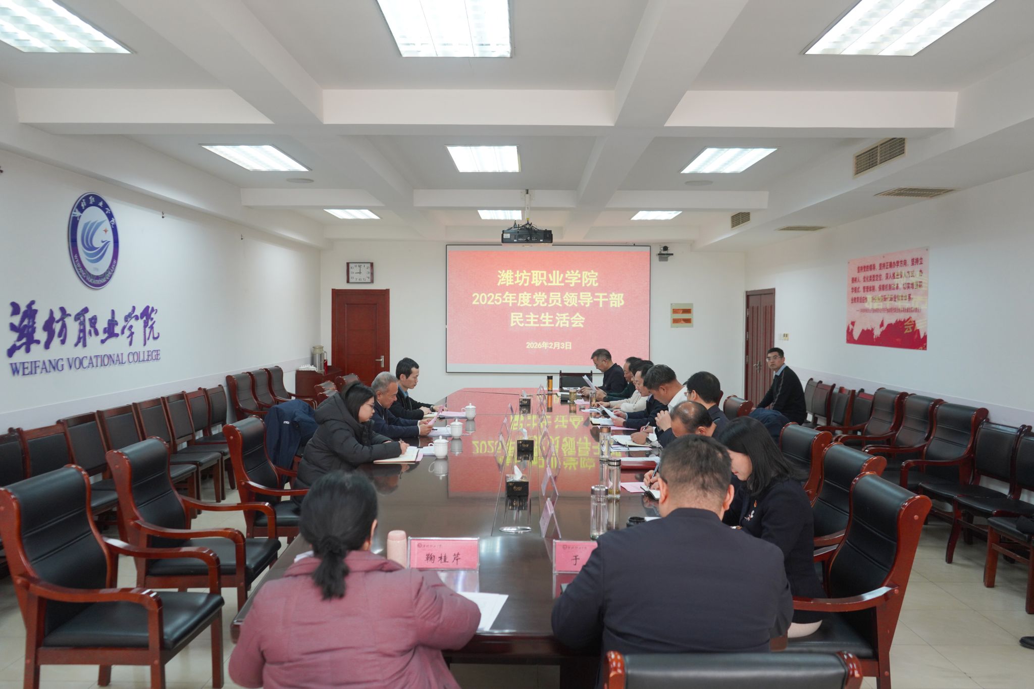 根据上级安排部署,2月3日上午,学院党委召开2025年度党员领导干部民主生活会,深入学习贯彻习近平新时代中国特色社会主义思想和党的二十大和二十届历次全会精神,立足学院工作实际,持续深入落实中央八项规定精神,紧密围绕岗位职责进行党性剖析,深刻查摆问题,切实将整改成效转化为推动学院高质量发展的坚实动力。市委第十四督导组组长马向东,成员刘永森、夏忆辰同志到会指导,学院党委班子成员参加会议。会议由学院党委书记王浩主持。