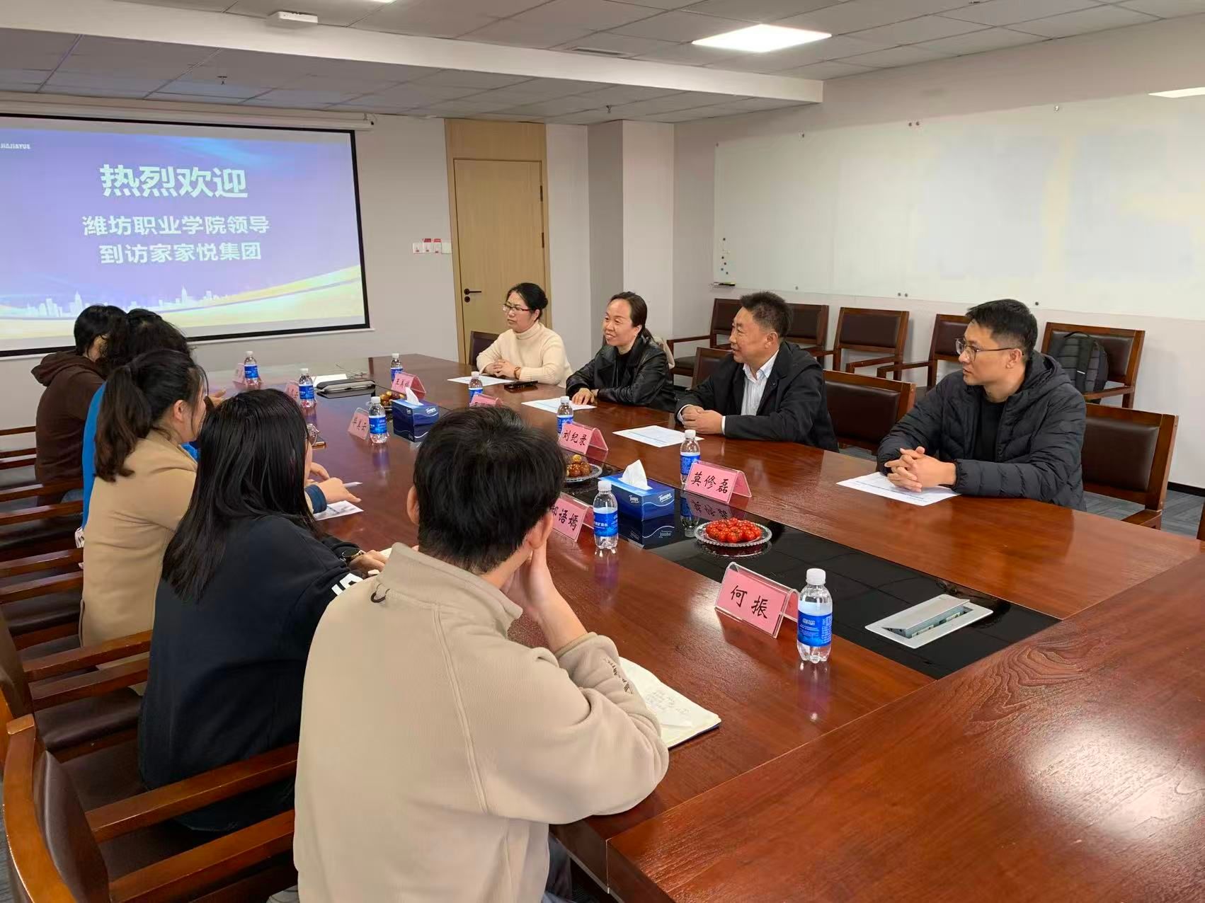 11月4日,经营管理学院主要负责人带领相关科室老师,赴威海走访家家悦集团股份有限公司与威海新北洋萤启科技有限公司等校企合作企业,开展走访调研活动,并看望企业实习学生。