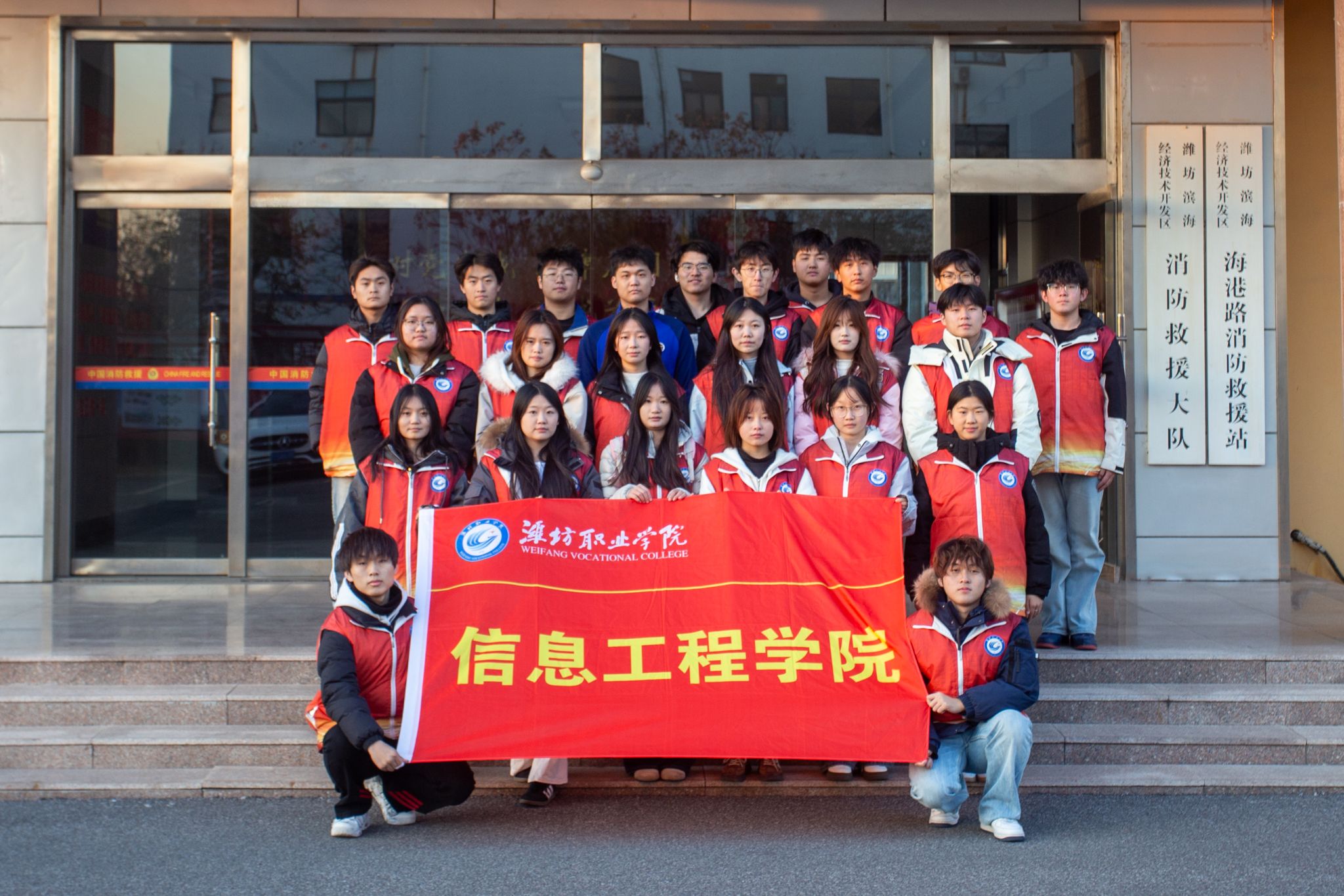 为弘扬“关注消防、生命至上”的安全理念,切实增强大学生的消防安全意识与应急处置能力,11月19日,信息工程学院志愿者前往寒亭区消防救援站,开展“走进火焰蓝,安全伴我行”消防安全实践活动。
