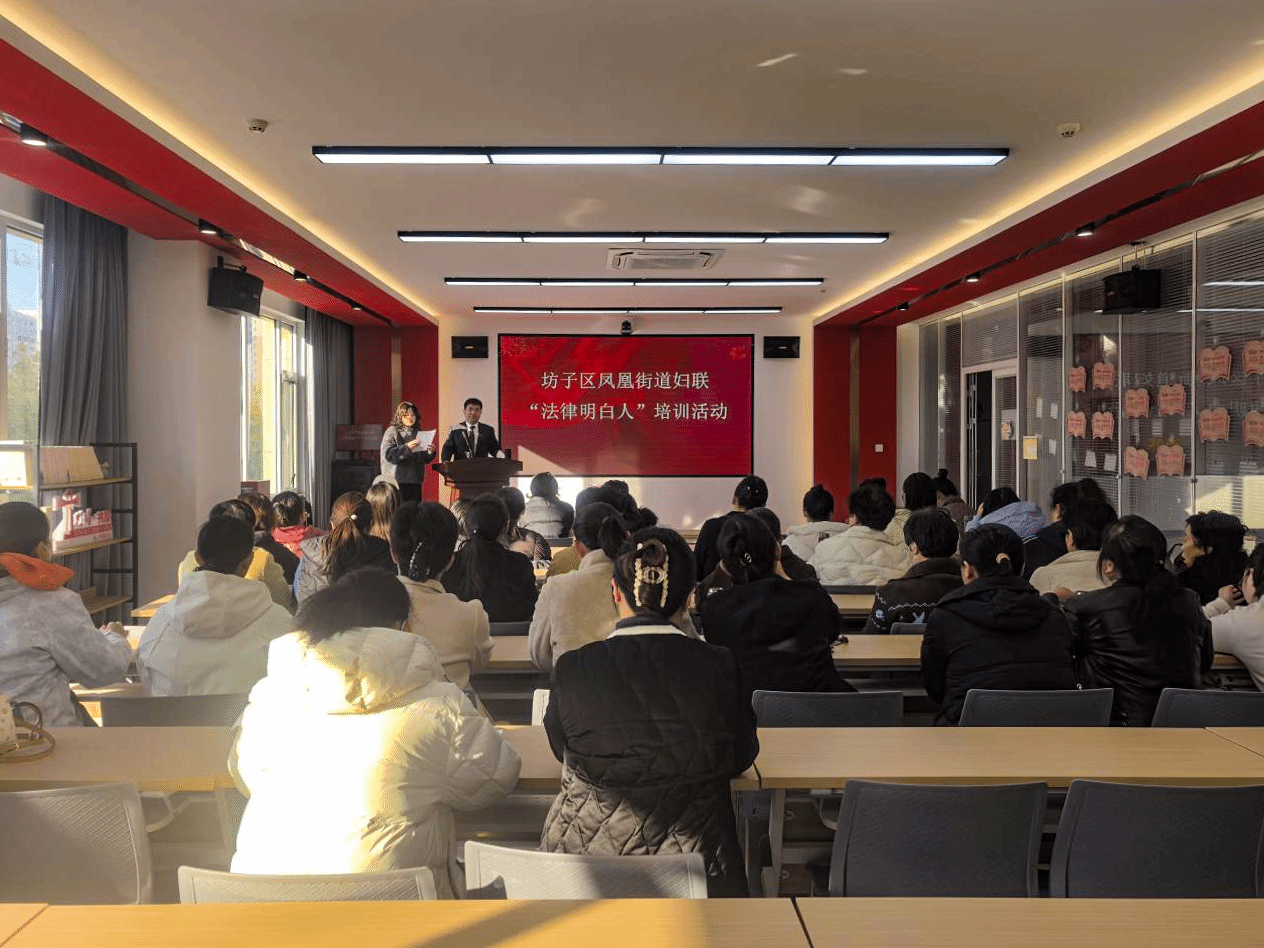 为深入贯彻落实《中华人民共和国民法典》及相关司法解释精神,切实提升基层妇联干部婚姻家庭纠纷调解水平,11月20日,马克思主义学院教师孙天锋赴潍坊市坊子区凤凰街道妇联,开展“法律明白人”专题培训。50余名妇联干部参加学习。