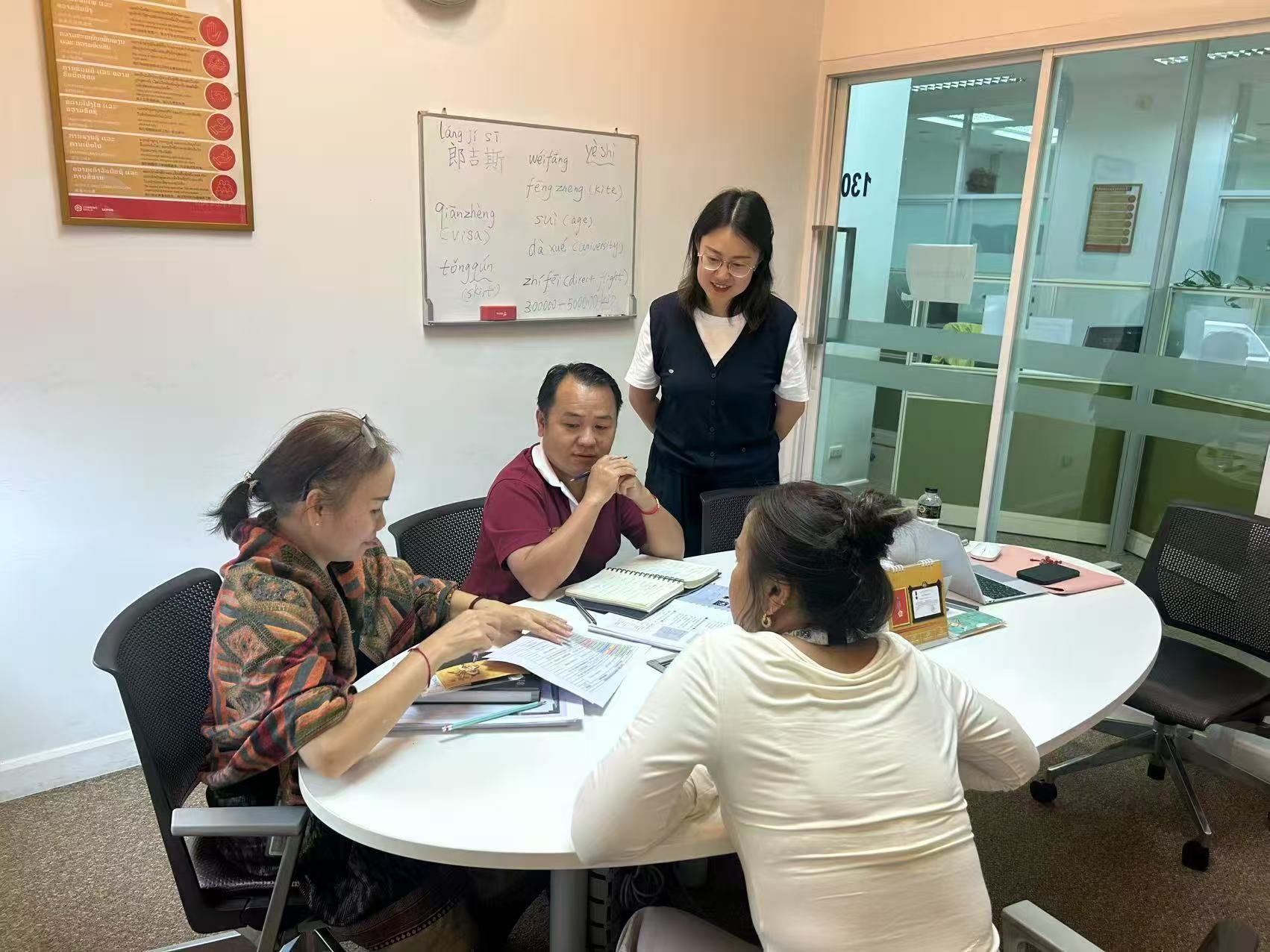 目前,三位教师正分别在企业万象总部、沙湾拿吉省塞班矿区有条不紊地开展中文、无人机教学和翻译工作。培训中,三位教师针对当地员工不同需求,因地制宜、因材施教,积极探索创新教学方法,将理论知识与实践操作紧密结合,全方位提升学员们的中文沟通能力和无人机安全操作意识。