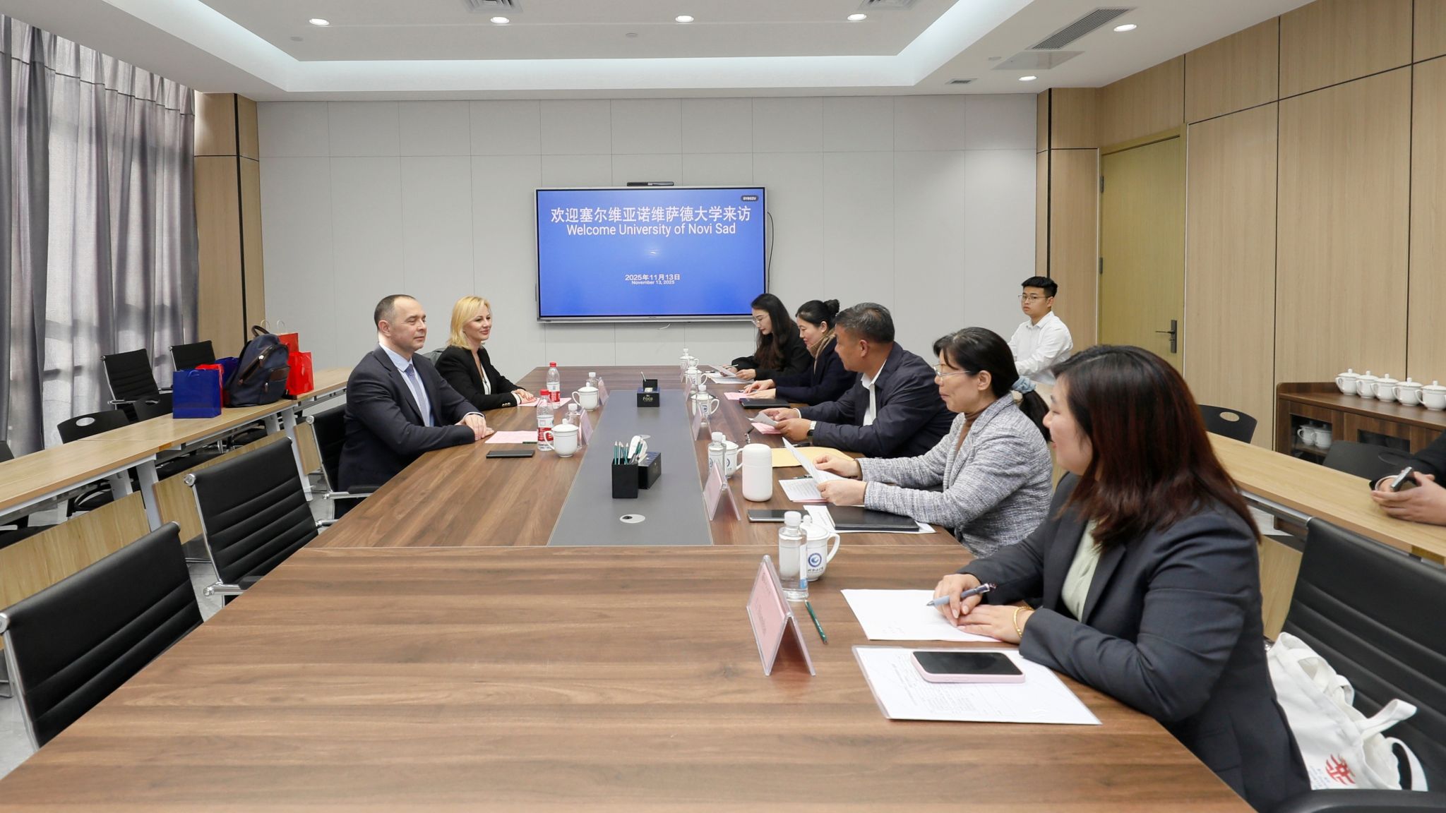 韩瑞东对代表团的回访表示热烈欢迎,并详细介绍了学院的办学概况、学科优势及国际化办学成果。他提到,作为“双高计划”建设单位,学院秉持“开放办学、合作共赢”的理念,积极推进国际化办学并取得了多项成果。内纳德·马加津对此次回访由衷地感到高兴,他介绍了诺维萨德大学的办学情况,高度评价了我院在办学实力与国际化发展方面取得的成果,并表示此次访问令他对中国当前的发展,尤其是教育和科技领域所取得的成就印象深刻。