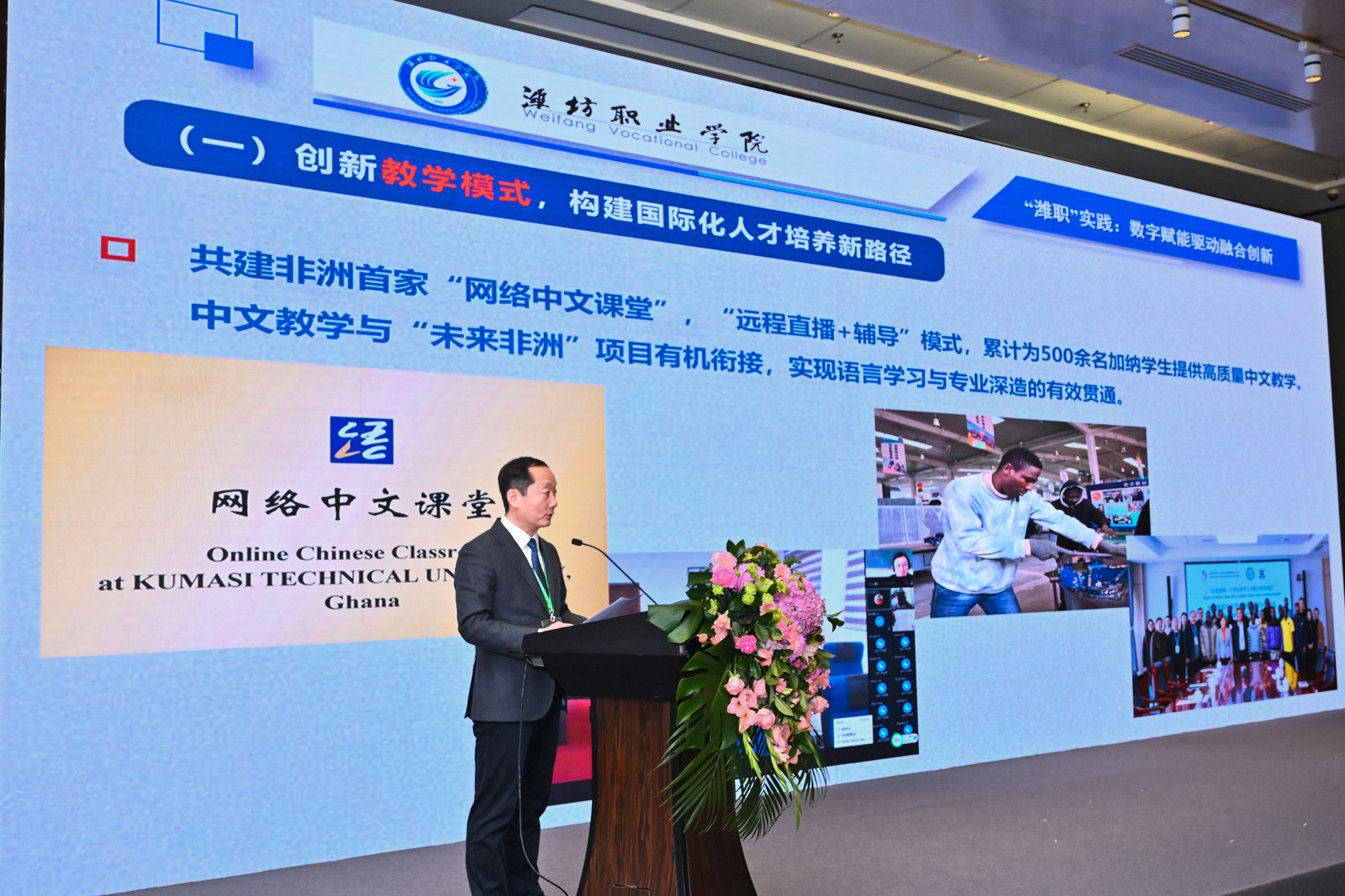 世界中文大会是国际中文教育领域规模最大、级别最高的国际盛会之一,作为中文联盟金牌合作伙伴,学院连续三年受邀参会。自2023年与加纳库马西技术大学合作共建非洲首家“网络中文课堂”以来,学院依托中文联盟服务云平台,采用“远程直播+辅导”的数字化教学模式,累计培训学员超500人,在培育兼具国际视野、复合技能与本土适配能力的技术人才上不断突破。