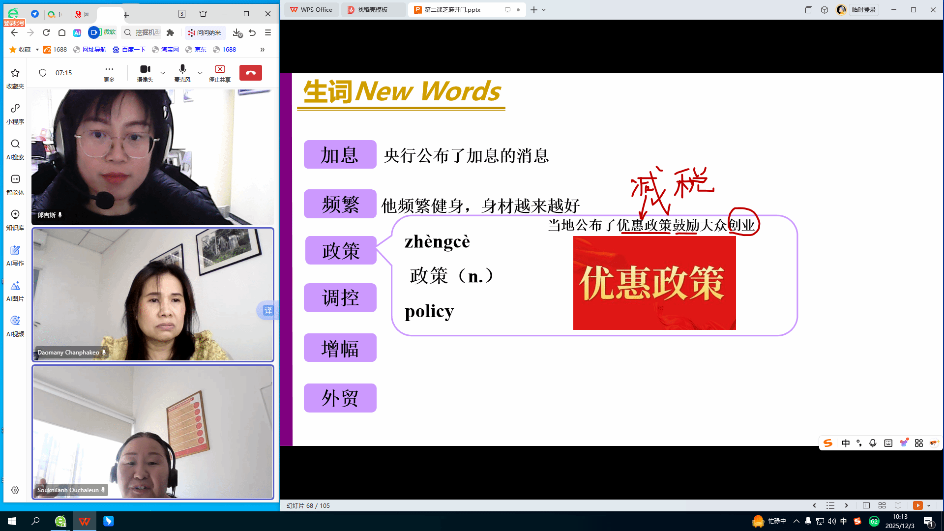 为深入推进老挝-班·墨学院建设进程,扎实构建“中文+职业技能”教育发展新格局,本学期以来,学院精准对接海外中资企业核心需求,择优遴选骨干国际中文教师,依托线上教学平台,为老挝万象矿业有限公司管理人员量身定制中文教学课程。此次线上教学是学院在选派教师赴老挝开展线下教学的基础上,对“班·墨学院”合作项目的深度延续与模式创新,标志着学院国际教育合作迈入线上线下融合发展的全新阶段。
