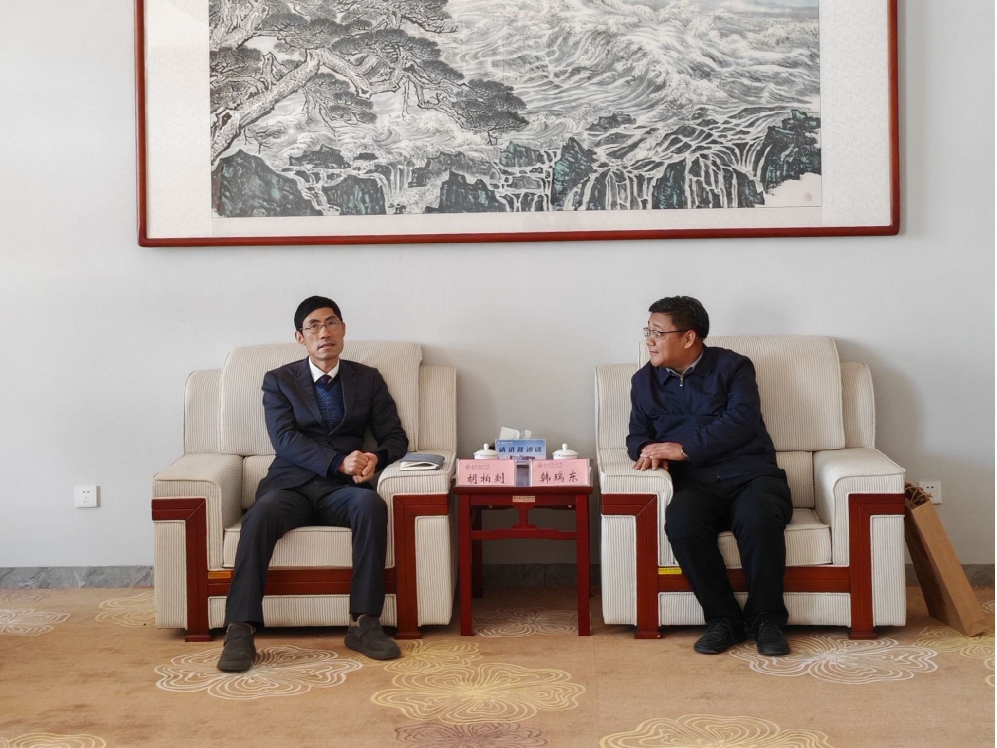1月17日下午,新和成股份公司表彰大会在我院滨海校区举行。会前,学院党委副书记韩瑞东热情会见新和成股份公司副董事长、浙江新和成股份有限公司总裁胡柏剡先生一行。党委委员、办公室(统战部)主任(部长)刘志艳和化学工程学院相关负责同志参加。