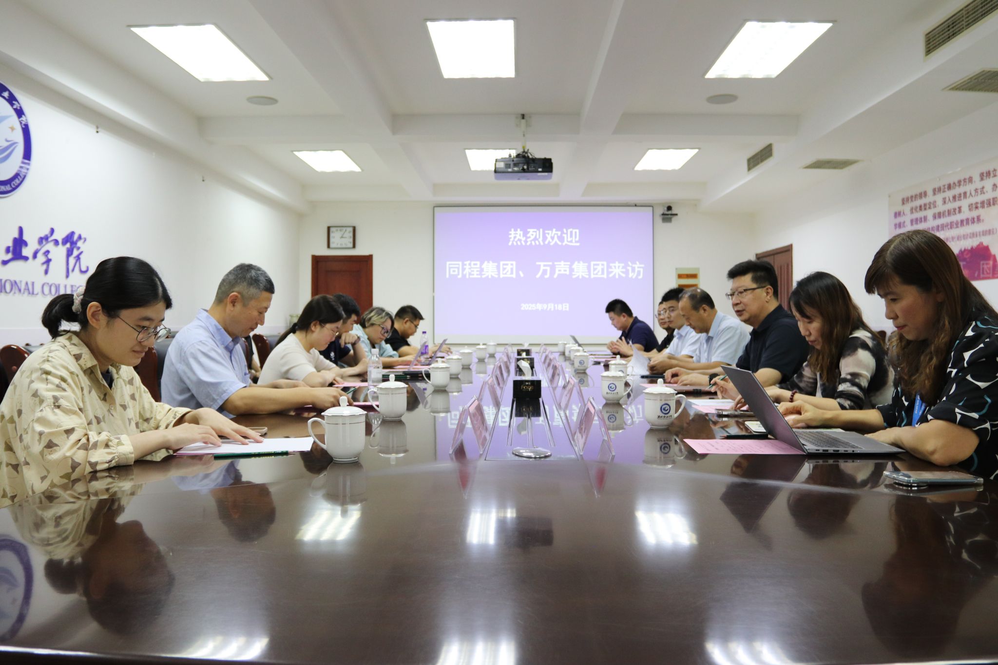 9月18日下午,同程集团副总裁肖玉池一行5人,万声集团副总经理邱运乾一行6人到访我院,就校企合作事项展开深入洽谈。学院党委委员、副院长赵宏坤会见客人,文化创意学院主要负责同志及相关人员参加座谈。