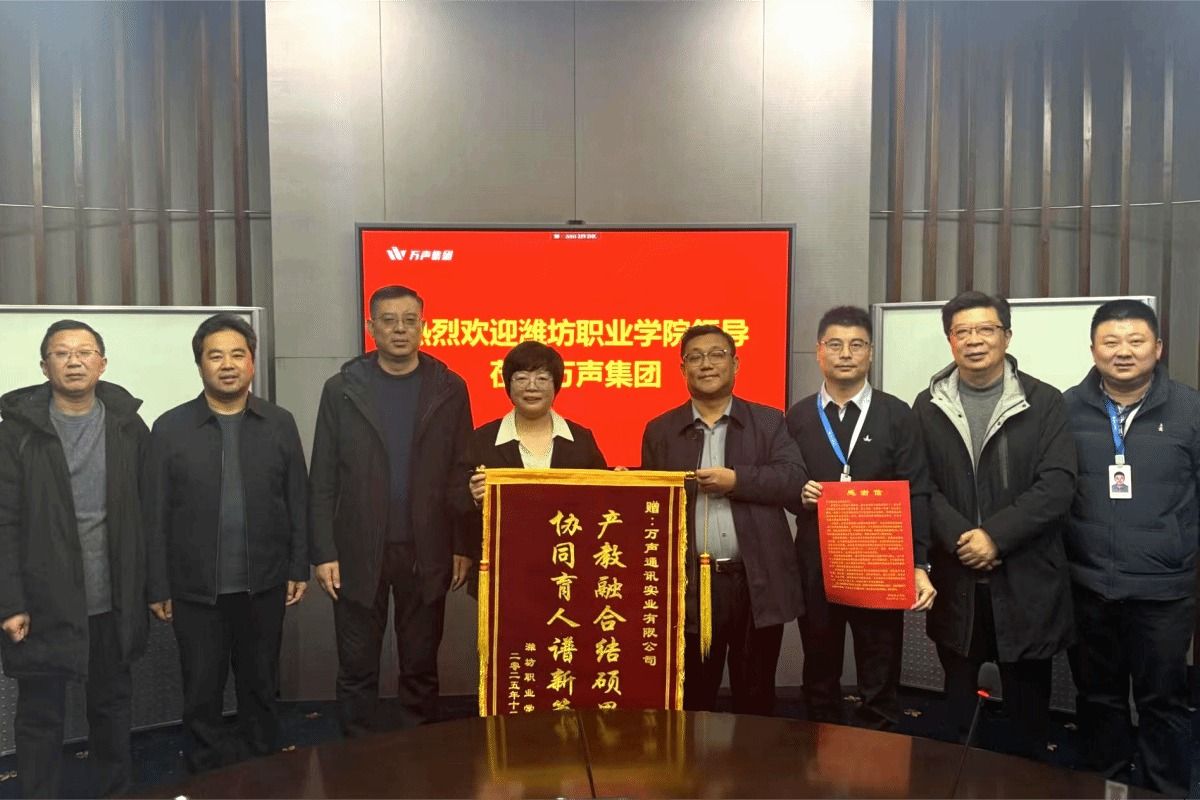 为深化产教融合校企合作,12月27日上午,学院院长韩瑞东,科技处、文化创意学院负责同志等一行5人赴万声通讯实业有限公司调研交流。双方就深化校企合作、推进产教融合高质量发展深入洽谈。万声集团总经理孙文玲,副总经理邱运乾热情接待。