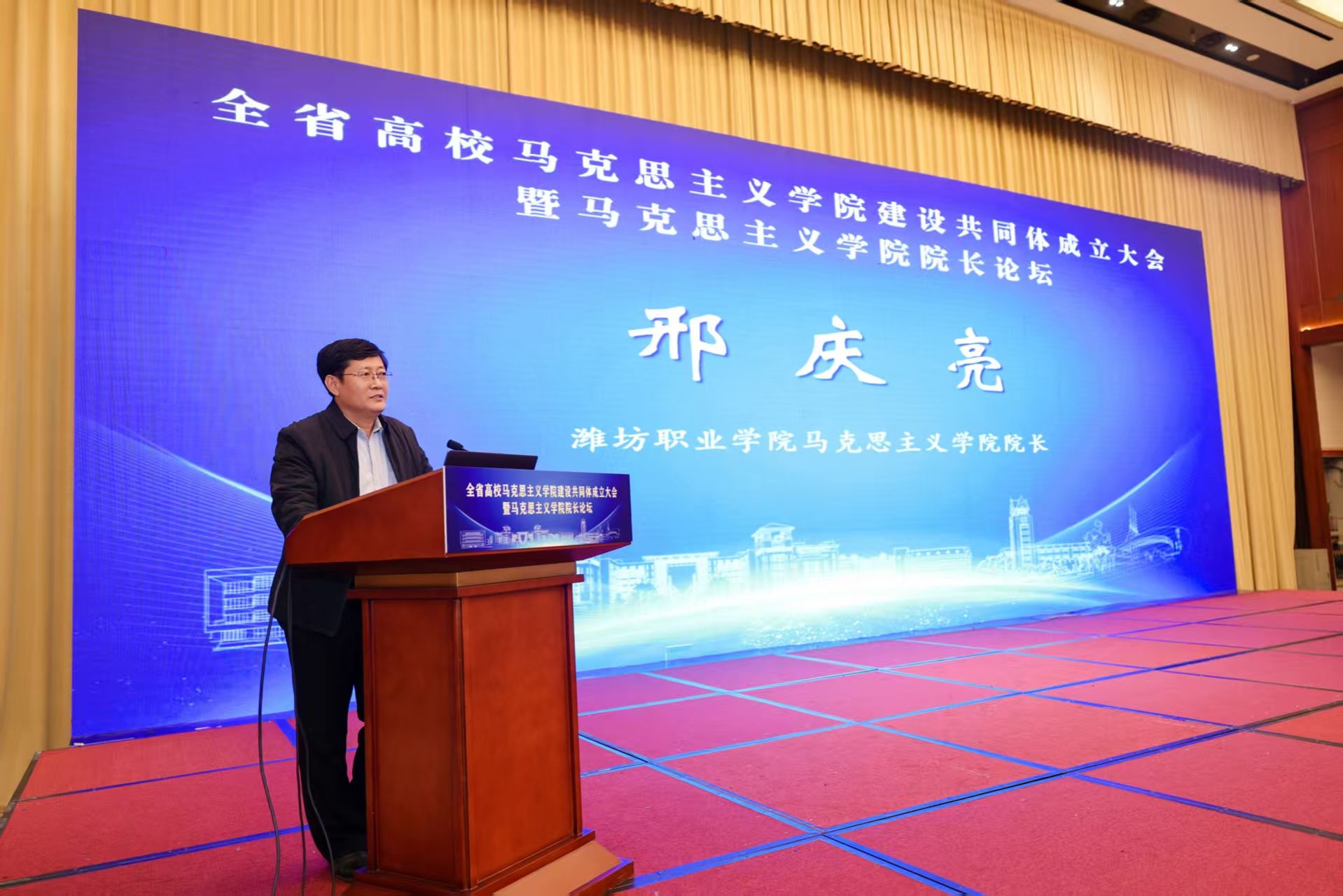 期间举办马克思主义学院院长论坛,18家本科院校、3家高职院校马克思主义学院院长作主旨发言,我院马克思主义学院邢庆亮教授以“双侧驱动 三步进阶 四维转化:高职院校思政课改革研究与实践”为题作大会主旨发言,在与会领导、专家中产生了良好反响。(李磊供稿)