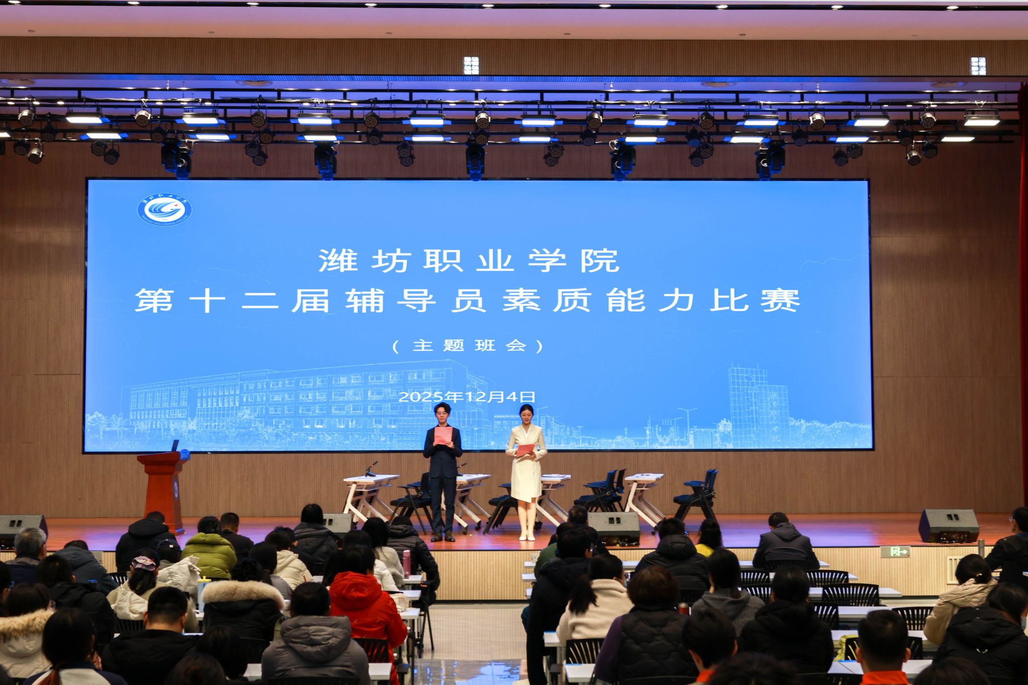 12月4日下午,学院在滨海校区综合楼一楼报告厅举办第十二届辅导员素质能力大赛主题班会环节的比赛。学院党委委员、副院长任培华出席活动,学生工作处、教师工作部及各二级学院党总支主要负责同志担任评委,全体辅导员观看比赛。