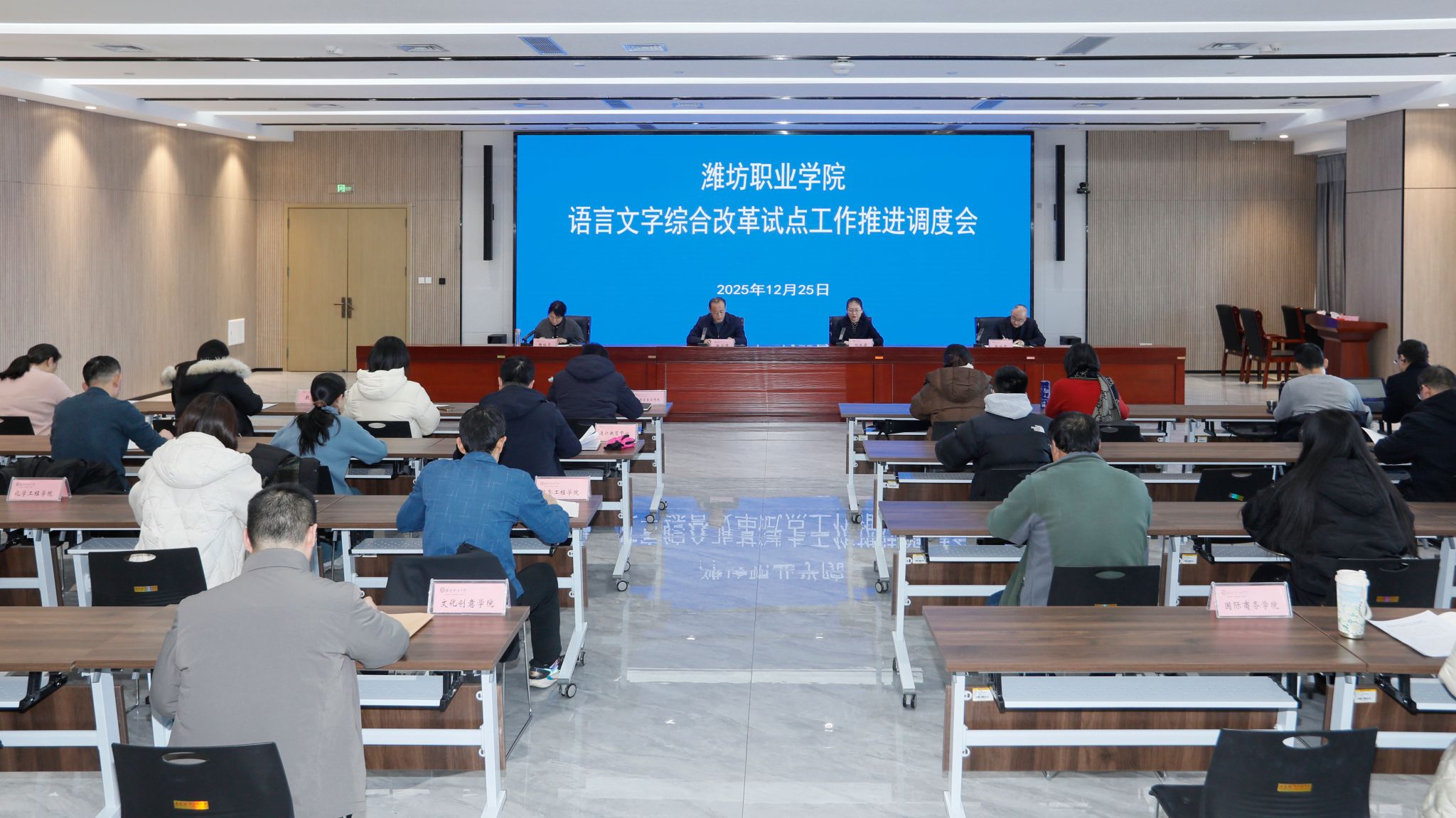 为深入贯彻落实山东省语言文字综合改革试点工作交流研讨活动精神,稳步推进学院“阅享青春·素养赋能”阅读素养培育提升试点项目,明确任务分工、压实工作责任,确保试点工作高标准推进、高质量见效,近日,我院在滨海校区南区综合楼二楼东会议室召开工作推进调度会。会议由党委委员、副院长赵宏坤主持,党委委员、宣传部部长、语委办主任鞠桂芹,原党委委员、语委办主任刘泓蔚教授,宣传部、学生工作处、教务处等相关职能部门及各二级学院语言文字工作负责人、联络员参会。
