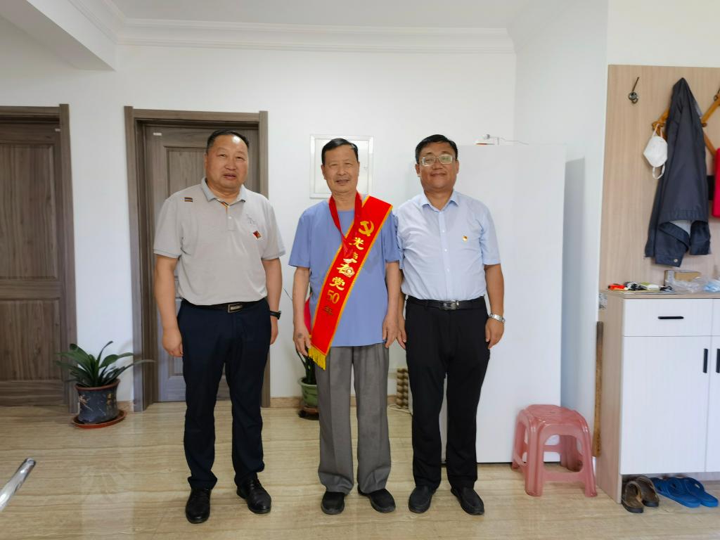 “七一”前夕,学院党委副书记韩瑞东,党委委员、组织人事处处长付一明带队走访慰问了我院离休党员邹立新,并为2023年度“光荣在党50年”的7名党员颁发了纪念章,代表学院向他们致以崇高的敬意和诚挚的问候。