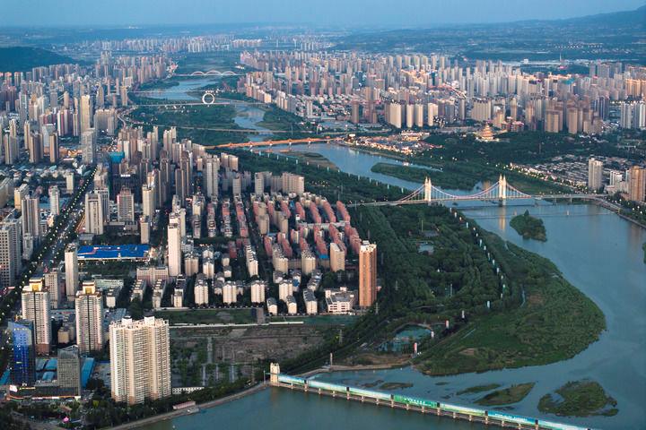 △穿过陕西宝鸡市城区的渭河景色