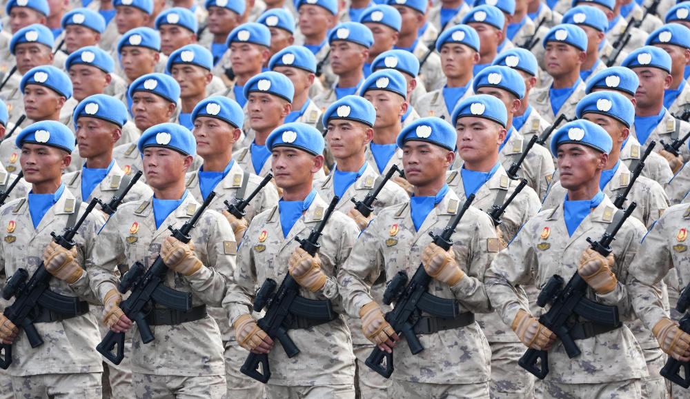 ??2025年9月3日,纪念中国人民抗日战争暨世界反法西斯战争胜利80周年大会在北京隆重举行。这是维和部队方队接受检阅。新华社记者 王建华 摄